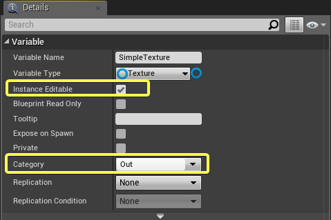 - Create a new variable named as SimpleTexture. Make varıable type Texture Object Reference.