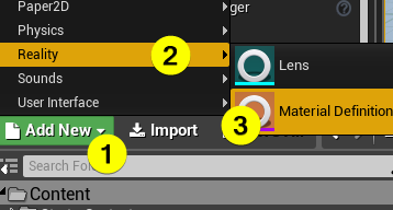 - Hover mouse cursor on Reality then select "MaterialDefinition".