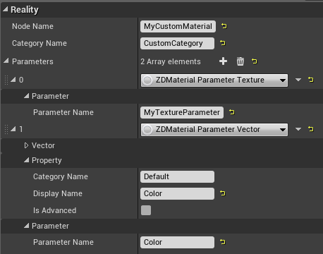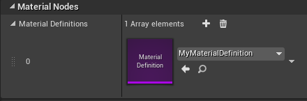 - Add an element to the array in the Material Definitions tab under the Material Nodes.
