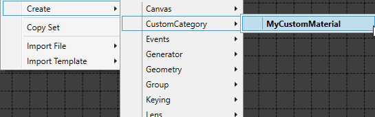 - Right click an empty area then hover on CustomCategory. (This comes from MaterialDefinition class. We set it under Category Name.)