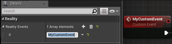 - In the details panel there is Reality section. Add a new elements to "Reality Events".