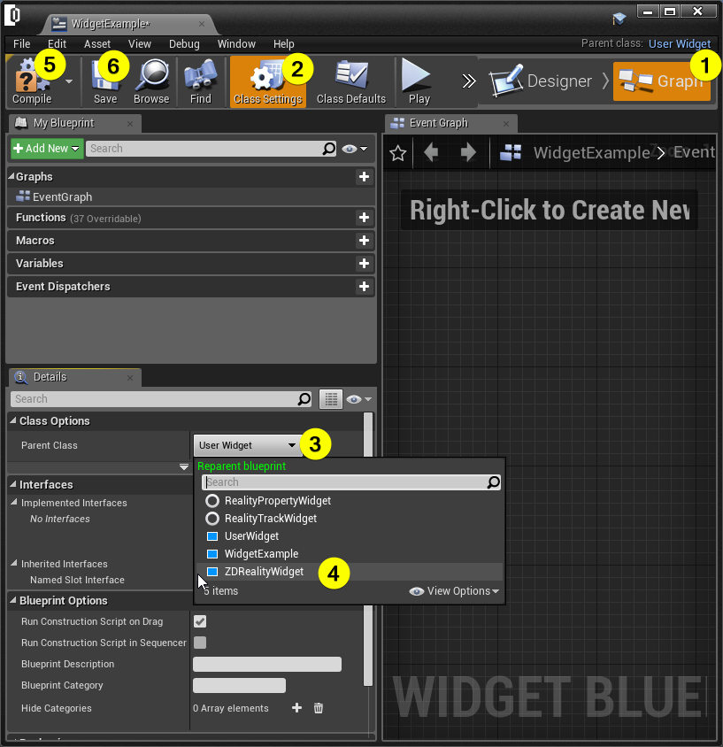 Changing the Parent Class of Widget Blueprint