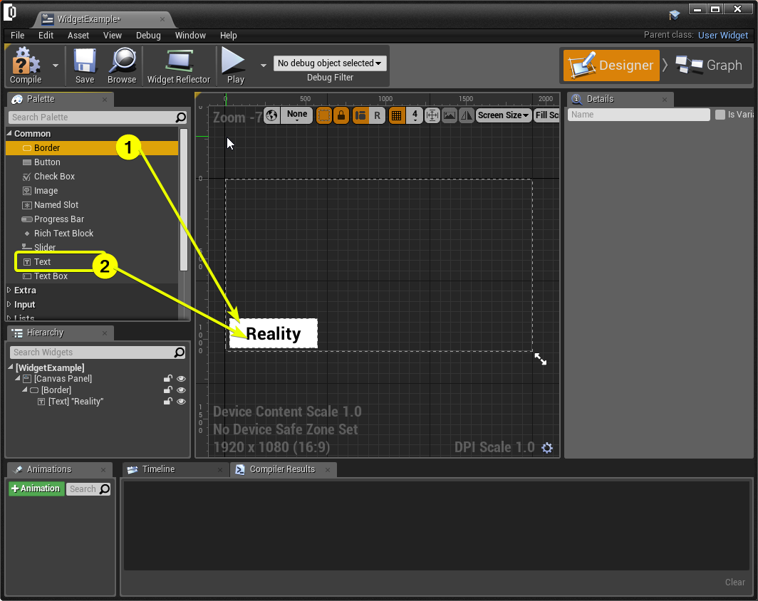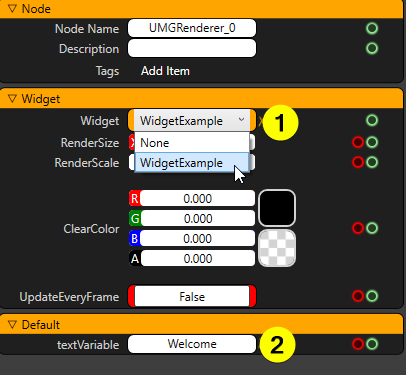 - Just choose the UMGRENDERER and check properties which is at left of Reality Setup. First of all, set the WIDGET to widget class which is created before then export it. The variable should appear up as shown in the below image. Write something in text variable (2) and change it in Real-Time.