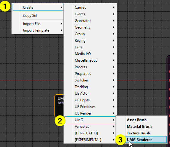 - Right click CREATE → UMG → UMG RENDERER