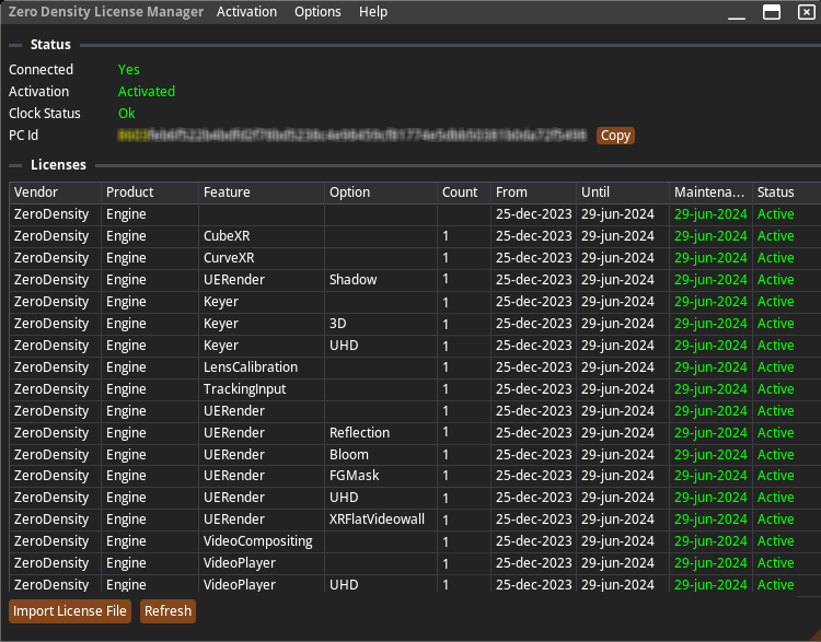 Licensing for Reality 5.3 SP2 is facilitated through the Zero Density License Manager, a recently developed, all-in-one licensing application, as demonstrated in the example above.