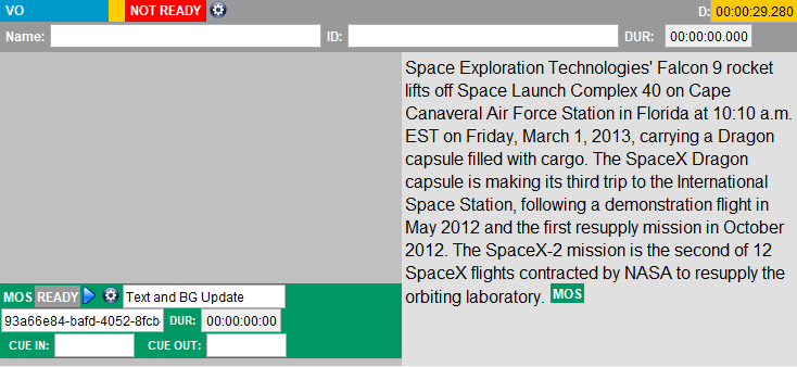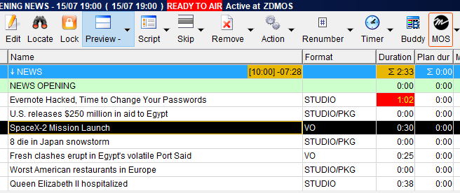 Adding a MOS Item to your Story turns its status into green, as displayed above.