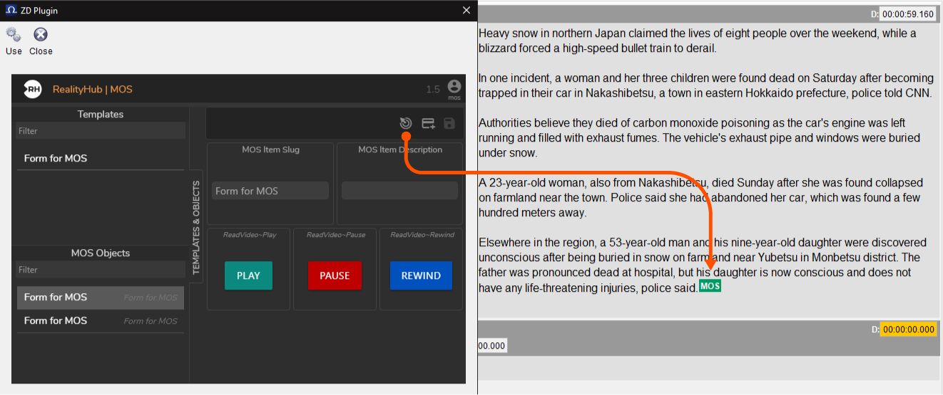 - Activate the ZD MOS Plugin in the selected rundown as illustrated above. This action automatically adds Octopus rundown item to the Newsroom rundown.
