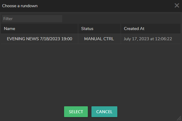 - Select the MOS Rundown item in the Choose a Rundown window as shown above.