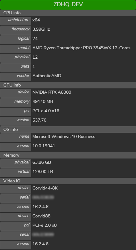 - PCI: Information about the PCI Express (PCIe) interface version used by the video I/O device.