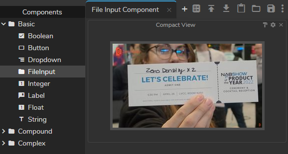 Clicking on the image inside the File Input property pops up the Asset Browser.