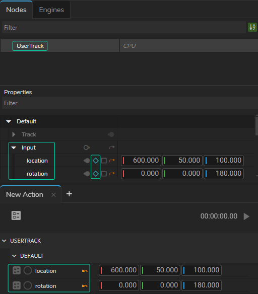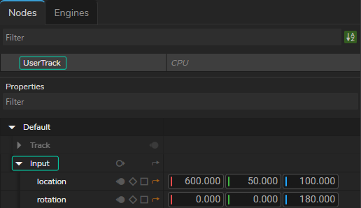 • Select the UserTrack node, go to Node Details Panel, find and expand the Input property group.