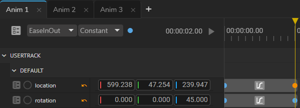 • While the second keyframe is selected, go to the Animation Interpolation, and change the interpolation type to EaseInEaseOut.