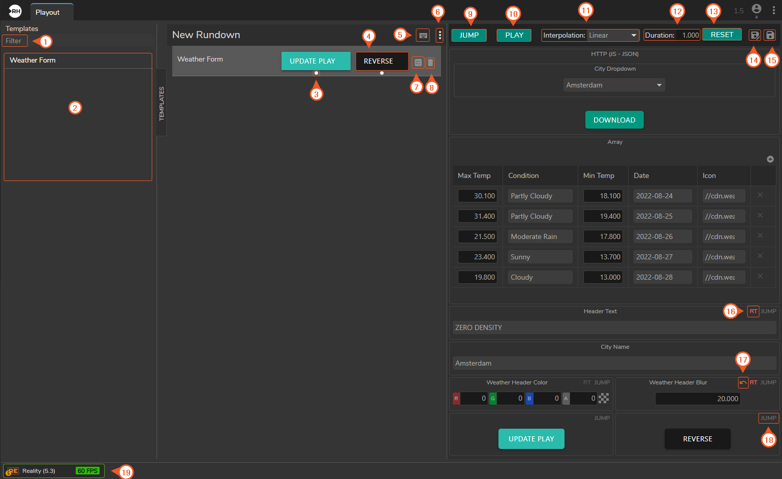 Playout is the Reality Hub module where you can distribute and transmit your graphics by creating rundowns and playing your Form templates.