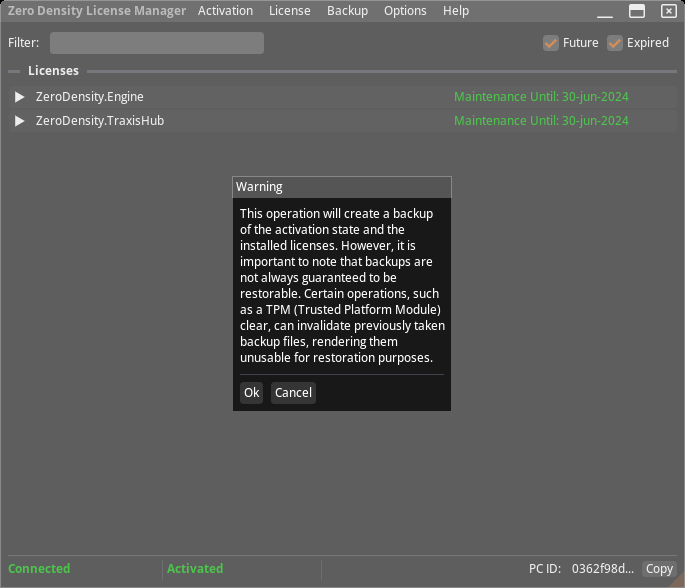 With the version 1.5, Zero Density License Manager supports Backup feature allows you creating backups and restoring them when needed.