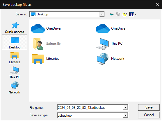 • Your data will be compressed and saved as a *.zdbackup file.
