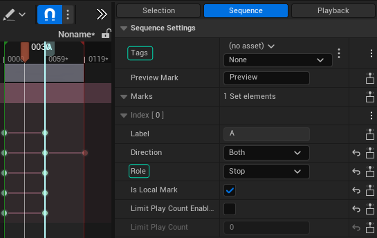 - Select the Mark, go to Sequence Settings tab, click on the Sequence.