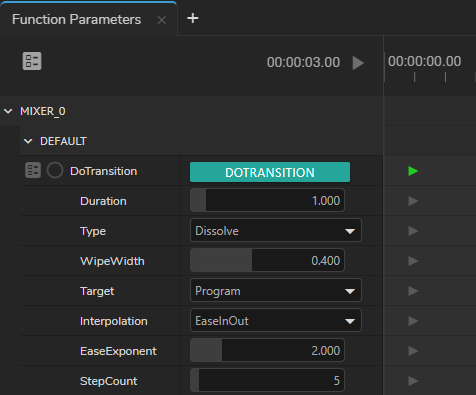 The image above indicates that DoTransition has seven Function parameters; therefore, when you add a keyframe DoTransition, function parameters will also get the keyframes.