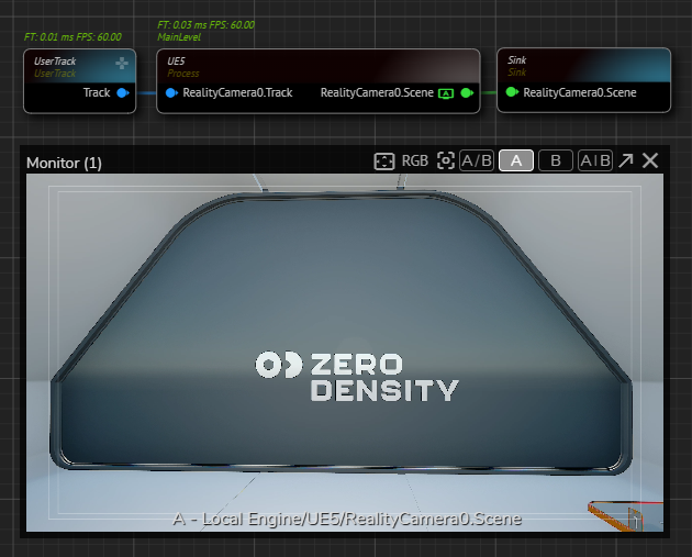 - Create a Sink on RealityCamera0.Scene output pin of the UE5 node.