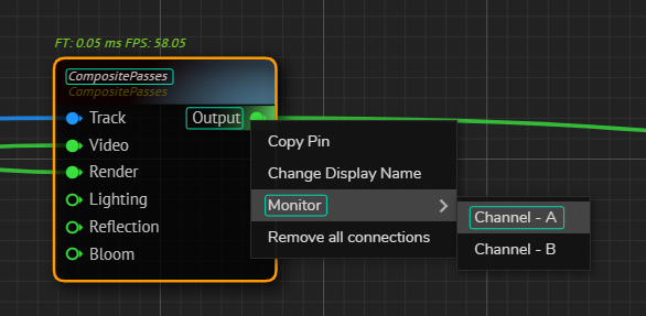 Outputpin of theComposite Passesnode and right-click. - Go to Monitor and select Channel - A.