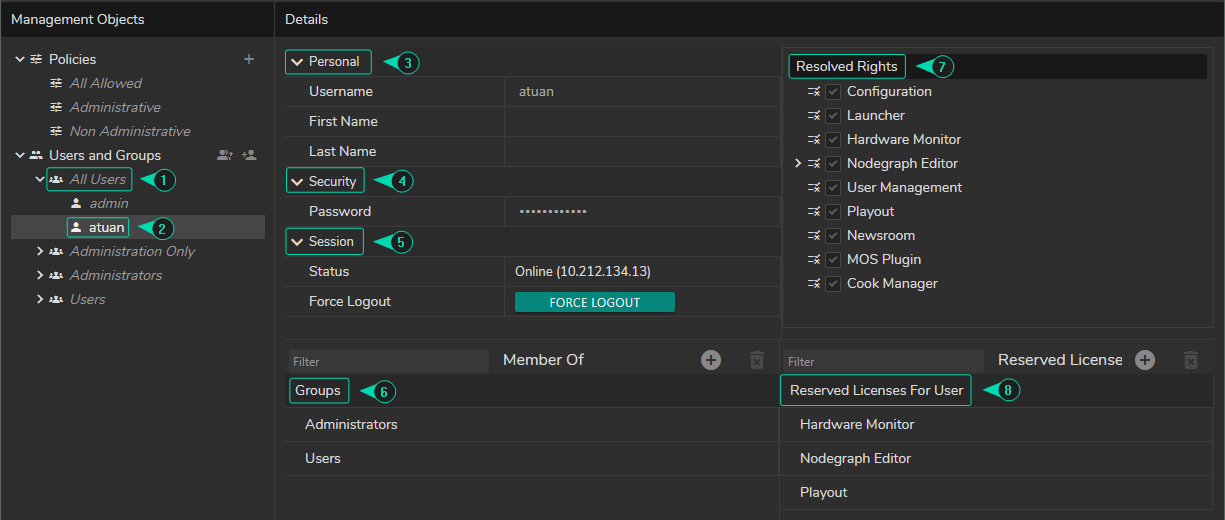 Users and Groups is the section where the admin or other administrators can create, edit, and delete users or user groups. Assigning users to groups and reserving licenses also occur inside the Users and Groups section.