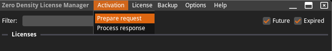 - Send the Activation Request file to our licensing department via licensing@zerodensity.io.