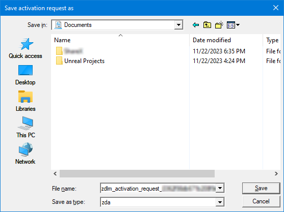 - Save the zdlm_activation_request*.zda file in a driver of your choice.