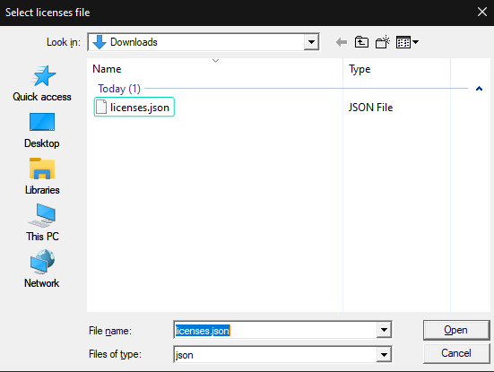 - Select the license file you received from Zero Density licensing department and click Open, as demonstrated in the image above.