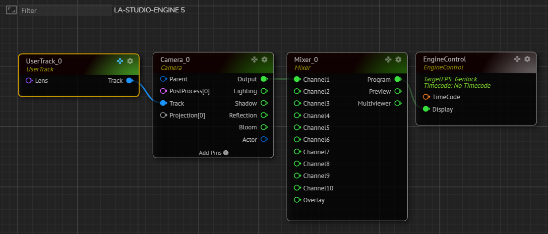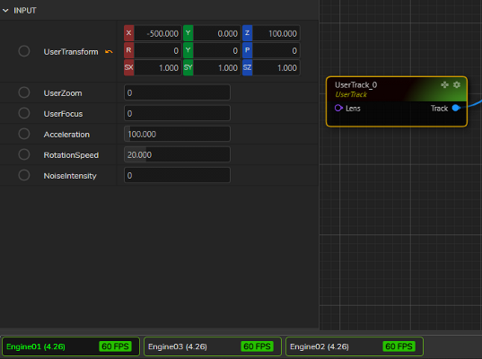 • Camera_0 node’s Track input pin to UserTrack_0 node’s Track pin
