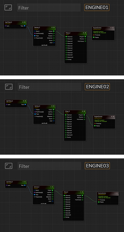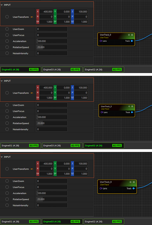 Since all three Engines are included in the Gang Mode, the change you made in the User Transform X value is reflected in the Nodegraph of the Engine01 and the Engine03, as shown in the image above.