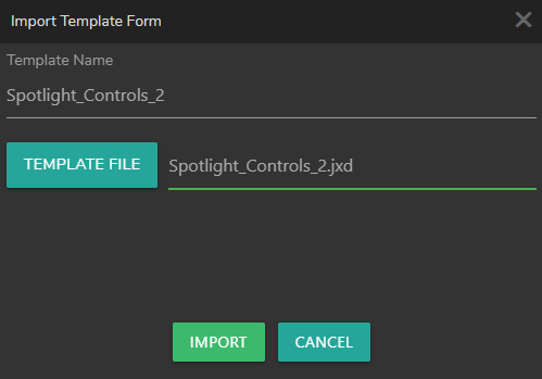 - Click on the Template File button and import the Spotlight_Controls_2.jxd file.
