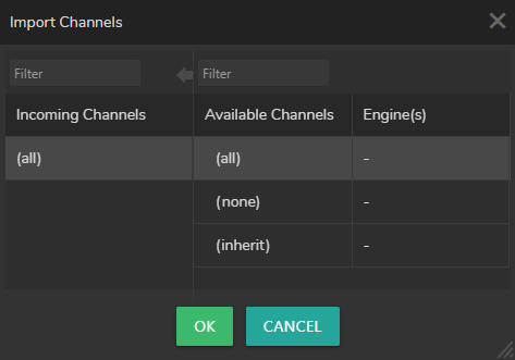 - Choose the channels you want to assign, click OK. See Channel Assignment.