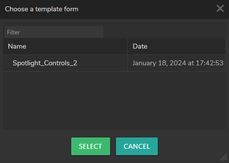 - Click on the Open Form button and select the Spotlight_Controls_2, as illustrated above.