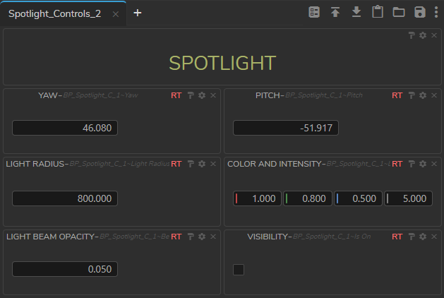 Now you can transmit Spotlight_Controls_2 property changes into your pipeline.