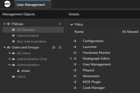 User Management is a module where you can define which user or user groups can access Reality Hub features/modules by creating policies and groups.