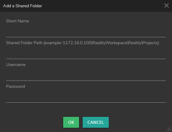 After clicking on the + (Add) icon, Add a Shared Folder window pops up, as shown in the image above. Fill in the required areas and click OK.