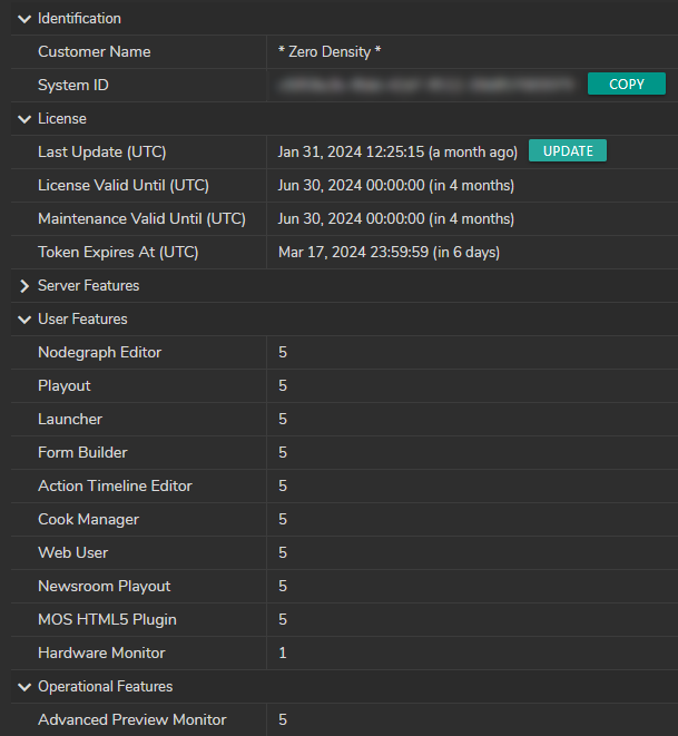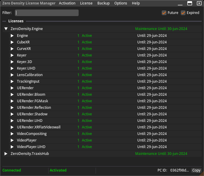 Licensing for Reality 5.4 is facilitated through the Zero Density License Manager, a recently developed, all-in-one licensing application, as demonstrated in the example above.