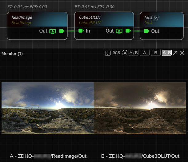 • Activate the APM B Channel on the Cube3DLUT node's Out.