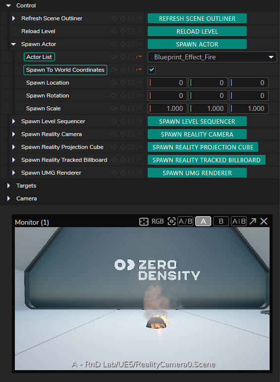- Actor List: A dropdown menu for listing and selecting an actor to be spawned.