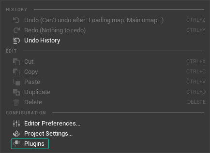 - Launch the Reality Editor, go to Edit > Plugins.