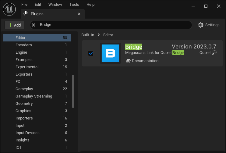 - Find the Bridge plugin, enable it, then restart Reality Editor.