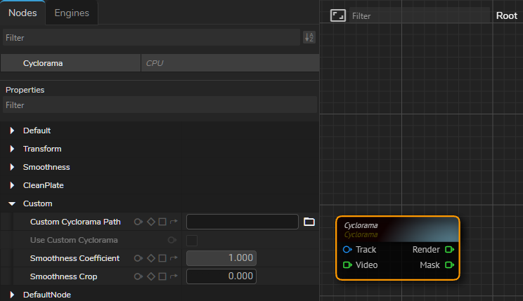 • Using custom cyclorama disable all transform properties of the cyclorama except for Position and Rotation since all related data comes from FXB file.