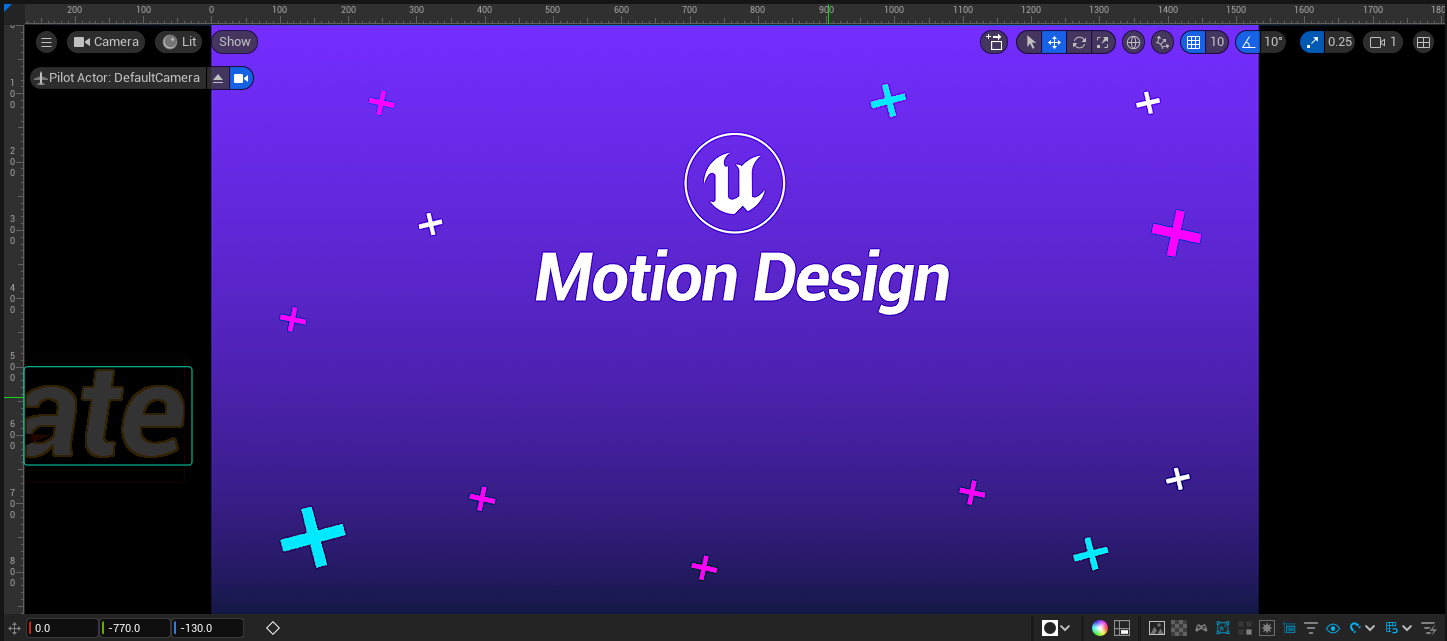 - Select Title Two and move it outside of the camera view, such as -770.0 in the Y direction.
