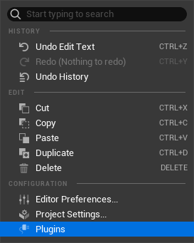- Click on the Edit in the application menu and select the Plugins.