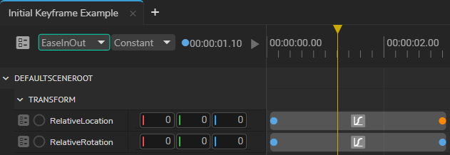 Transformproperty group, click on Add Timeline button forRelative LocationandRelative Rotationproperties. See also Node Property Toolset.