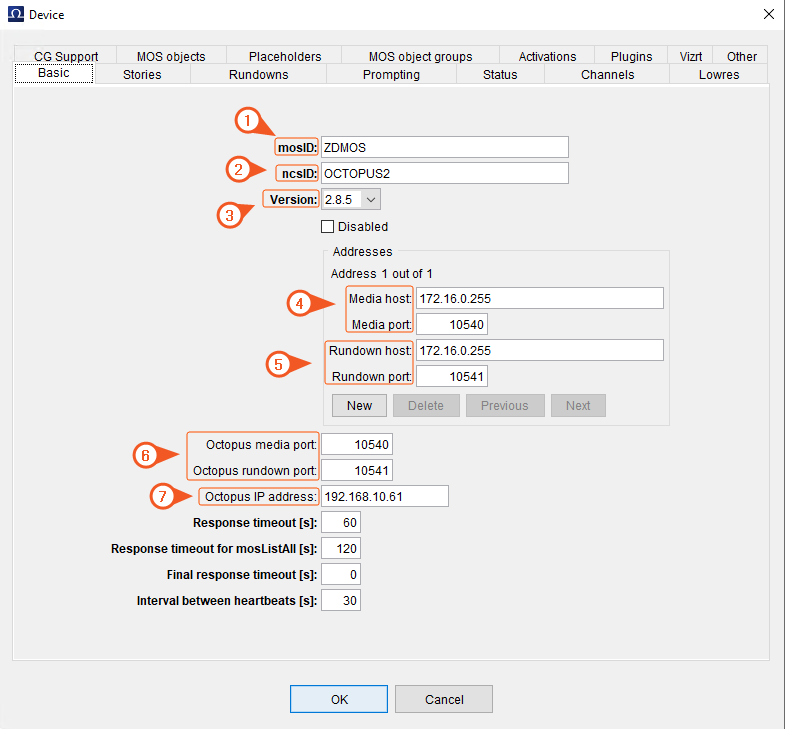- Media Host & Port: NRCS MOS Gateway IP Address and Port Number. In our case, it is the Reality Hub Server IP address and the default Media Port Number.