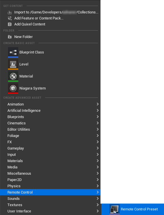 - Right-click and go to Remote Control, and select the Remote Control Preset